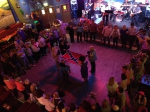 At the end of the night, they have a slightly disturbing ceremony where they play ‘An American Trilogy’ and everyone stands in a circle while five of the regulars very solemnly fold a Confederate flag. Once it’s folded, they ‘salute’ the flag with a gunshot. This part of the Opry experience has a bit of a strange feel to it. Is it racist?! Well, anyway, we usually sit it out and get back on the floor when it’s dancing time again.